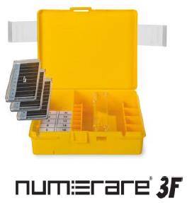 • de 2 compartiments pour le positionnement, stockage final et comptage des compresses (10 emplacements pour petit format + 5 emplacements pour grand format)